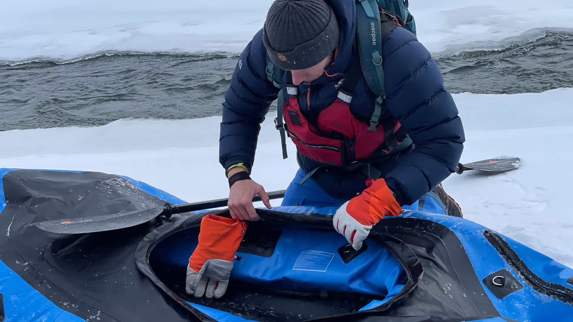 Leanna Carriere, and Timm Döbert, cycling in Patagonia.