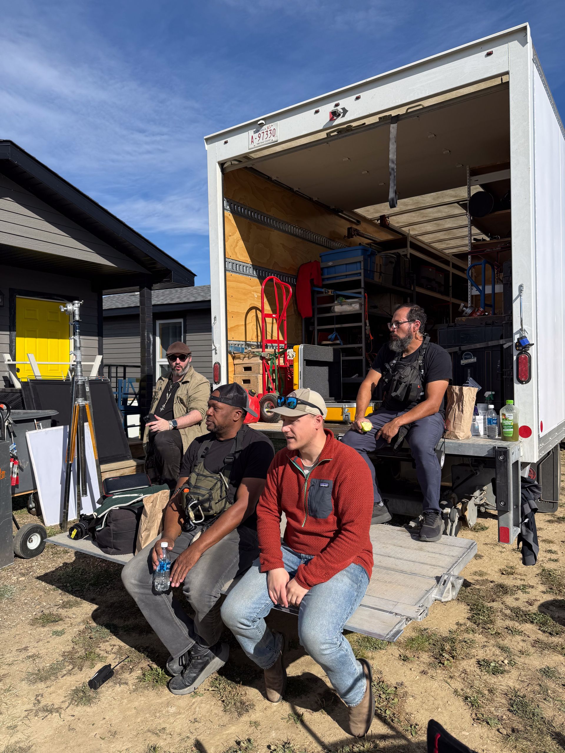 Crew taking a breather after unloading and setting up the first shot of the day!